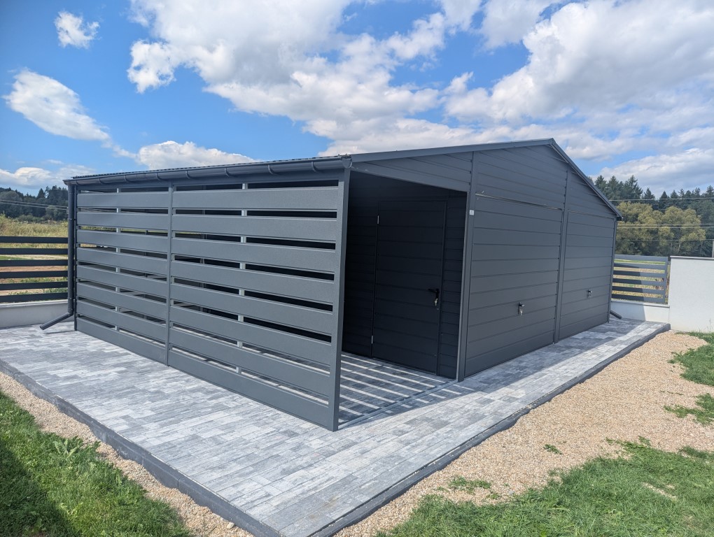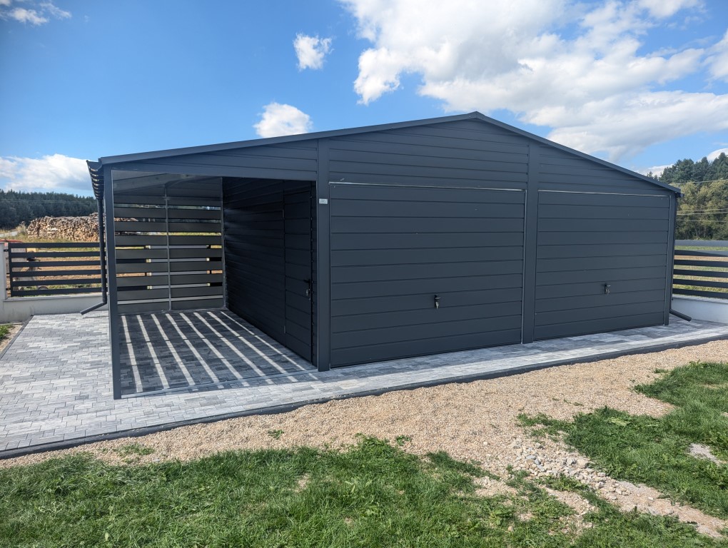 Garaż blaszany z wiatą 8m × 5,8m