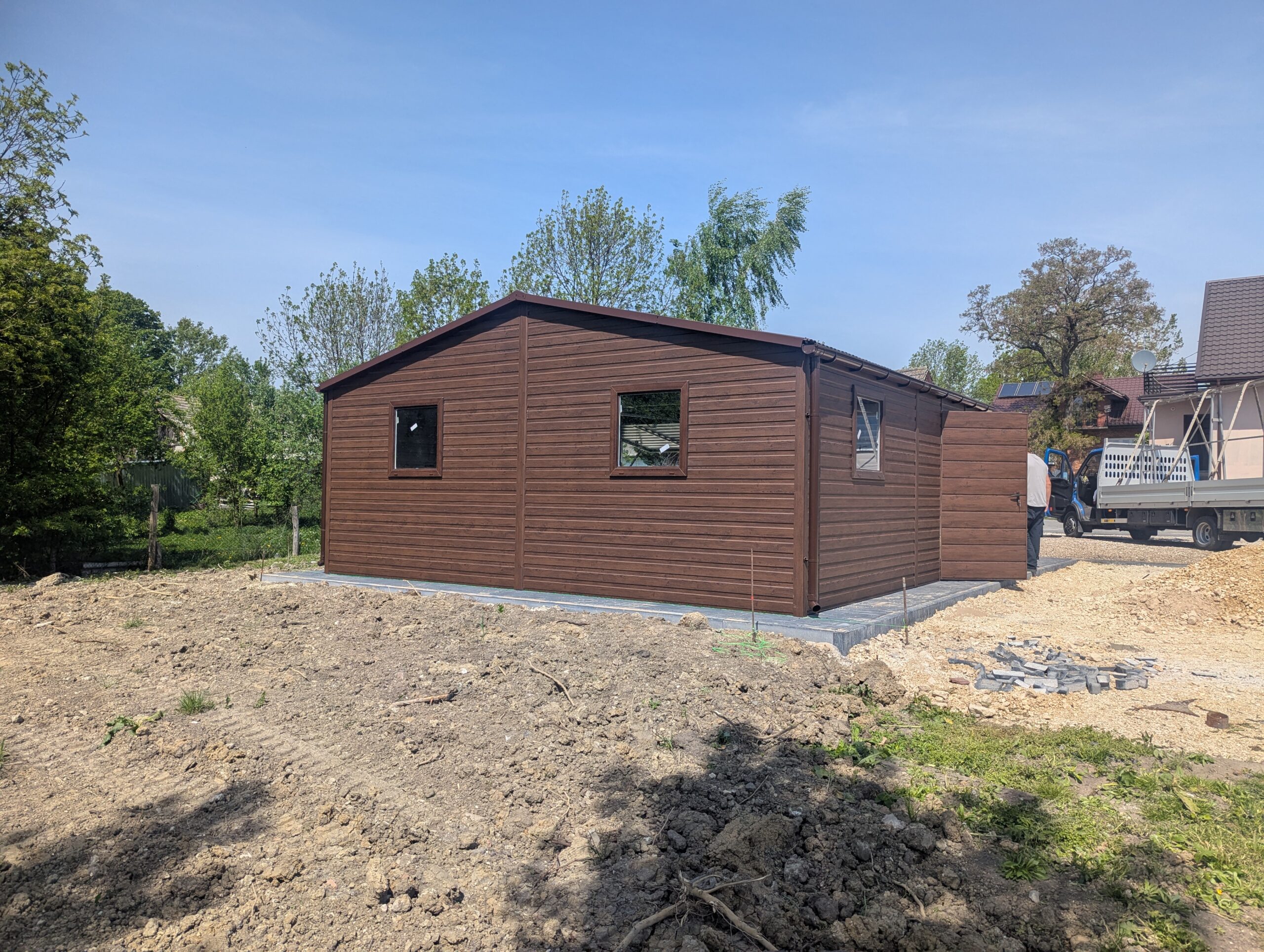 Garaż Blaszany Orzech 6×6– Solidny Garaż Drewnopodobny z Profila Zamkniętego