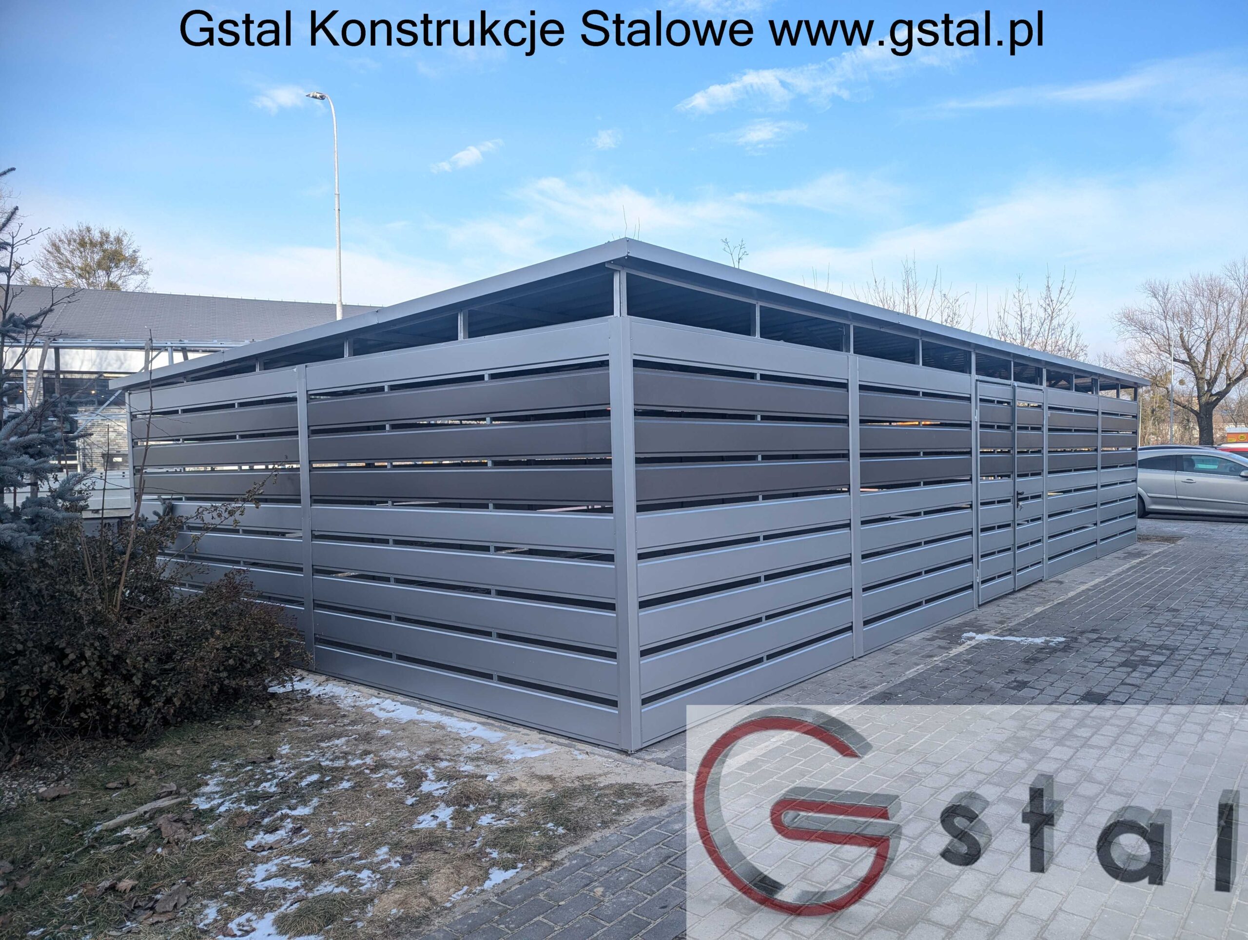 Wiata śmietnikowa 11,5×5,5 m RAL 9006 + RAL 9007